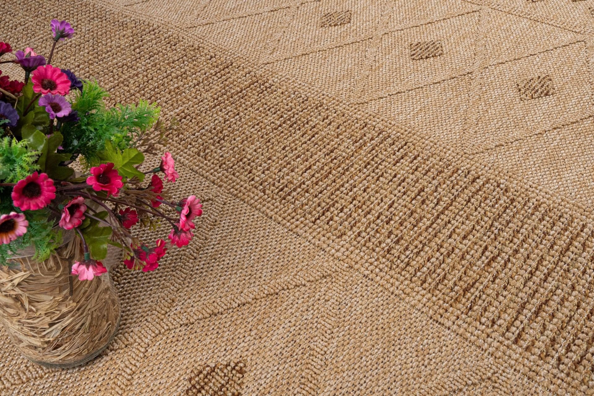 Craft Serisi Bej Kahve Hasır Dokulu Dokuma Halı S-2334