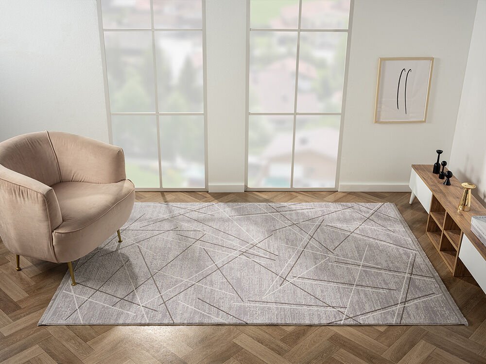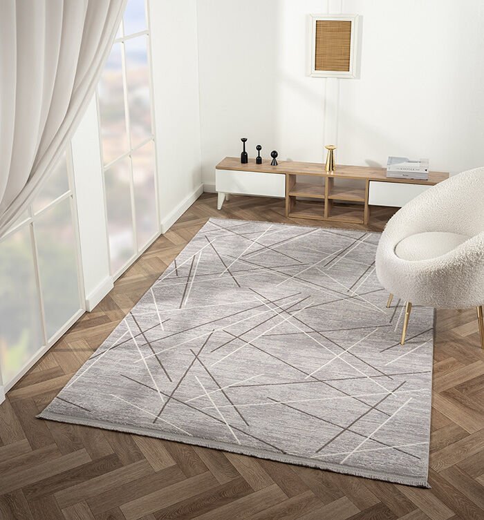 Feel Serisi Akrilik Yüksek Kalite Gri Bej Renk Makine Halısı FL006G